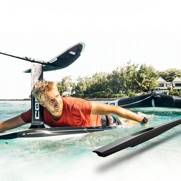 Even, predictable flight. Easy, steady takeoffs. And super smooth turns. The larger size imparts a more balanced flight behavior at all speeds. The dihedral curvature lets you tilt the foil into turns like a skateboard for a smoother cruising behavior. Gybes, tacks, 360s, and transitions are much easier since you can feel your back wing and use it to pivot the foil.