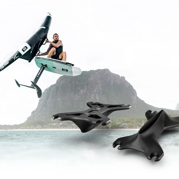 Our CNC’d fuselage features well-rounded edges to improve water flow over the wing and stabilizer. We’ve maximized the geometric wing connection surface area to reduce twist, improve stiffness, performance and water flow while the area between the wing and mast is optimized to keep torsion movement to a minimum.